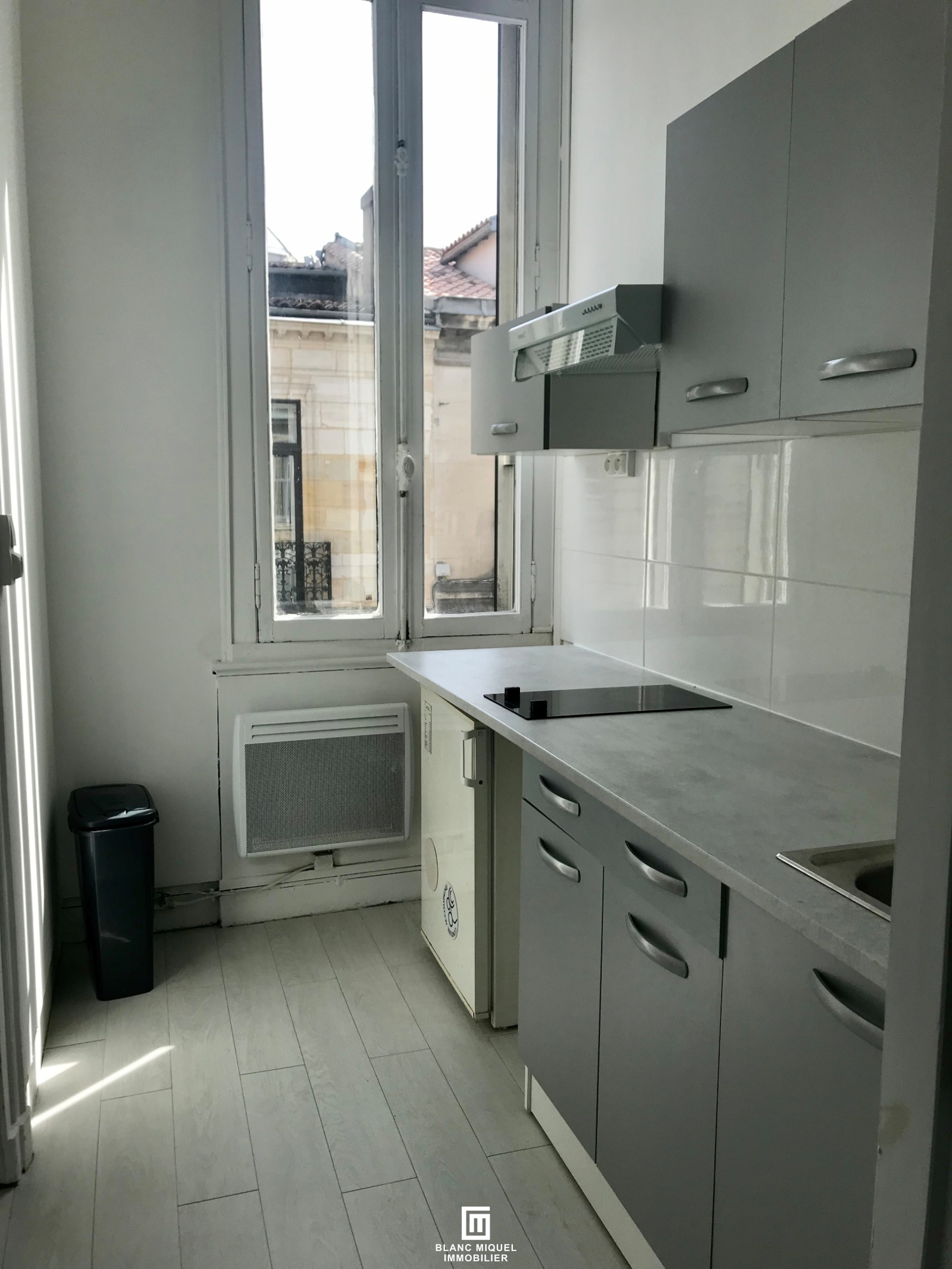 Rue de Pessac, appartement T1 de 24,40m2 au 1er et dernier étage d'un immeuble en pierre, composé d'une pièce de vie, une cuisine séparée et équipée, et une salle d'eau avec WC.
