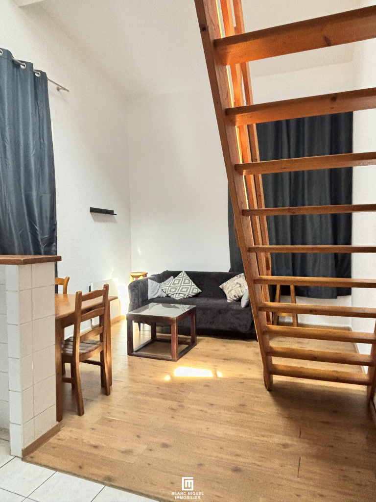 Quartier Saint Michel, Rue Carpenteyre, au 2ème étage d'un immeuble pierre, T2 meublé d'environ 39 m2 en duplex; composé au rdc d'une entrée avec placards, une pièce de vie avec cuisine ouverte aménagée et équipée, et une salle d'eau avec WC et à l'étage une grande chambre en mezzanine.