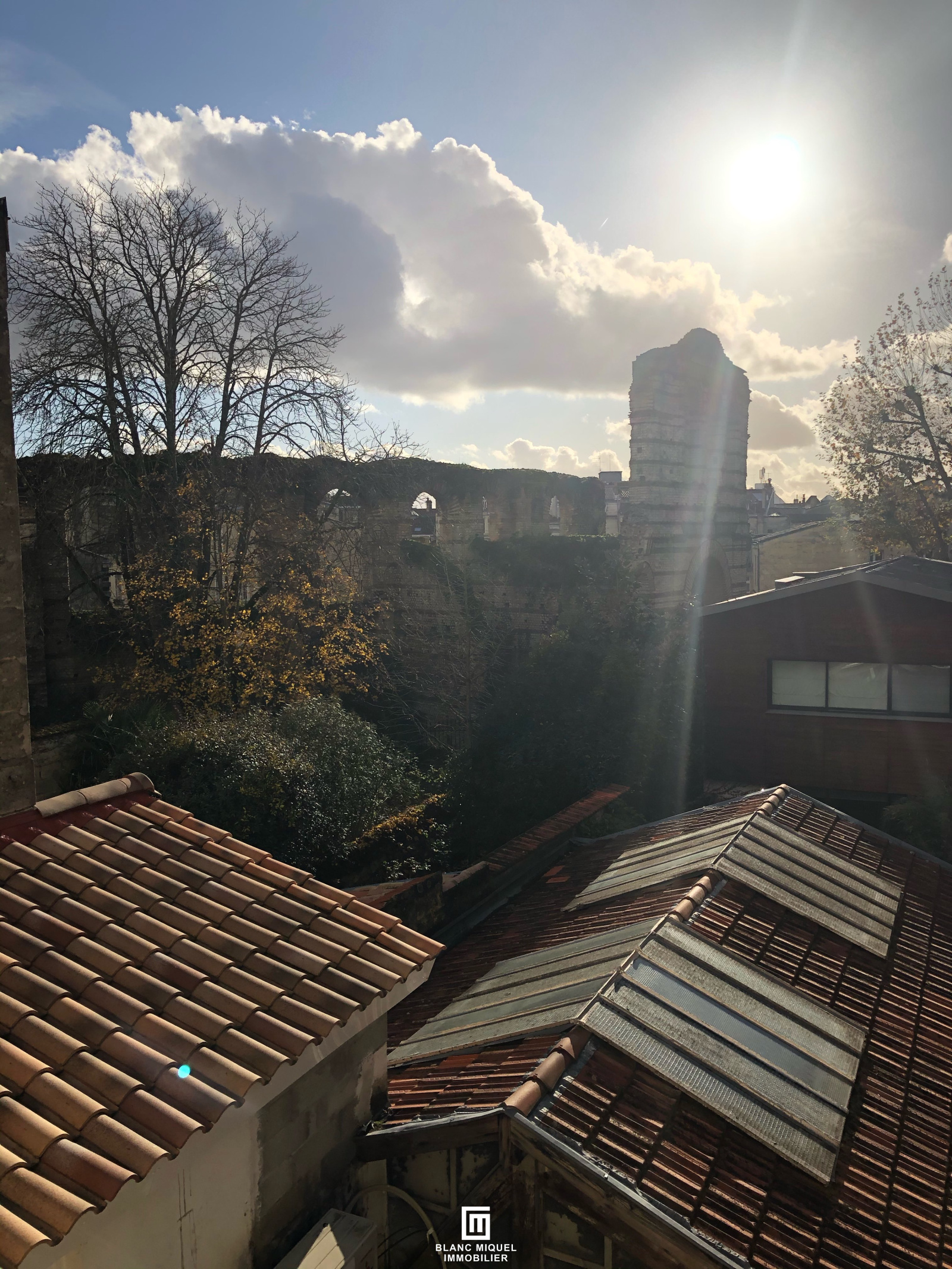 Rue Fondaudège, au 2ème étage d'un immeuble pierre, beau T3 meublé de 71,77 m2, comprenant 1 entrée, 2 chambres avec vue sur les ruines du Palais Gallien, 1 salon/séjour, 1 cuisine américaine aménagée et équipée, 1 salle de bain et wc.