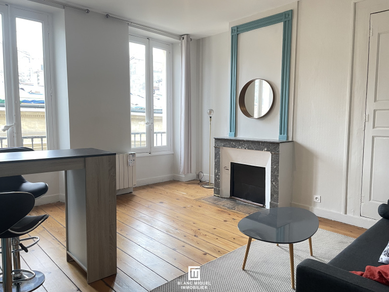 Dans le quartier Saint Pierre, rue du parlement sainte catherine, 3ème sur rue d'un immeuble pierre, beau T2 entièrement meublé, composé d'une entrée, une chambre donnant au calme sur l'arrière de l'immeuble, une salle d'eau avec wc, un séjour lumineux et une cuisine séparé aménagée et entièrement équipée.