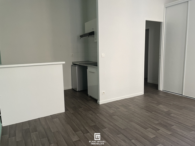 Au rdc d'un immeuble pierre, idéalement situé dans la rue Tombe l'Oly, au calme mais proche des transports et des commerces, T1 composé d'une pièce de vie avec grands placards de rangement, cuisine américaine équipée, et une salle de bains avec branchement machine à laver et un wc séparé .