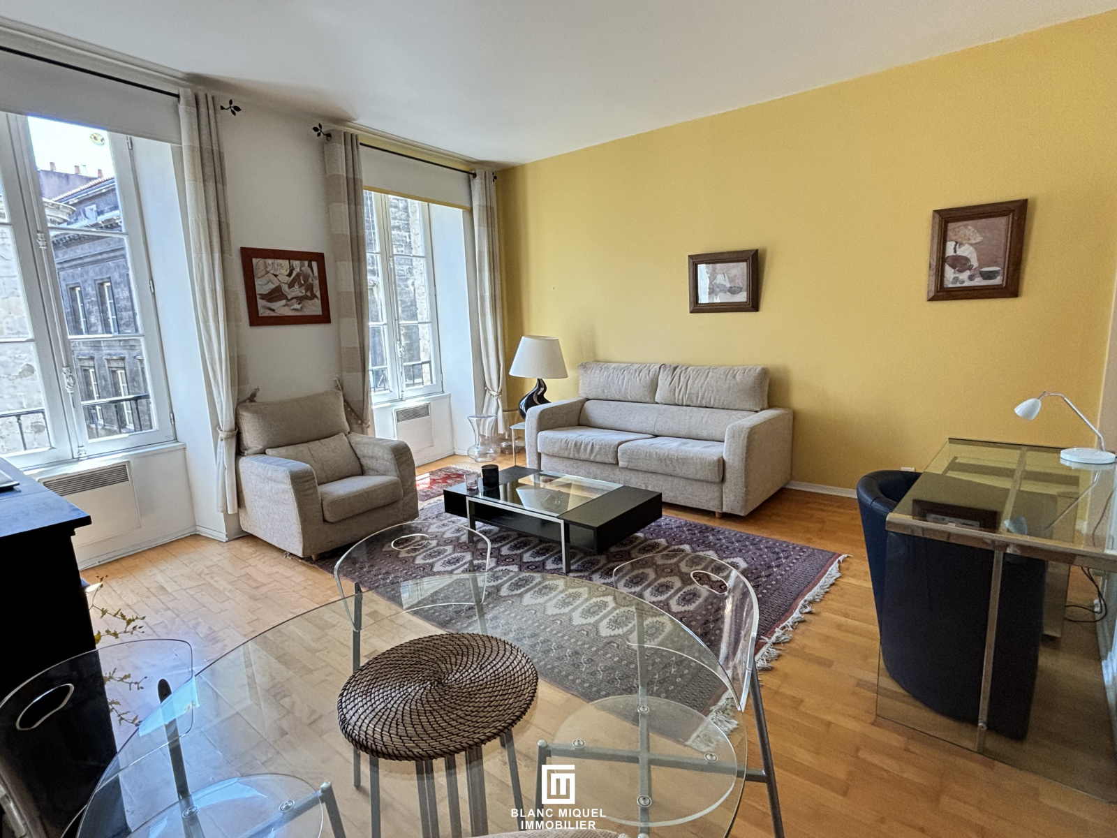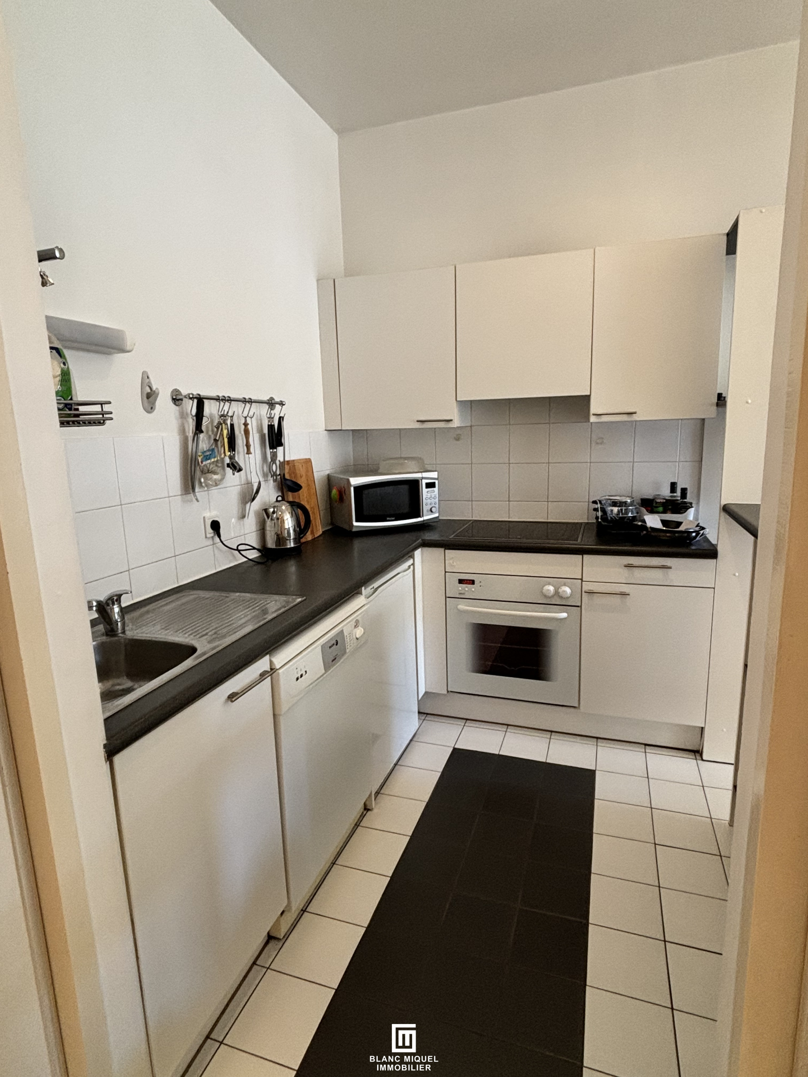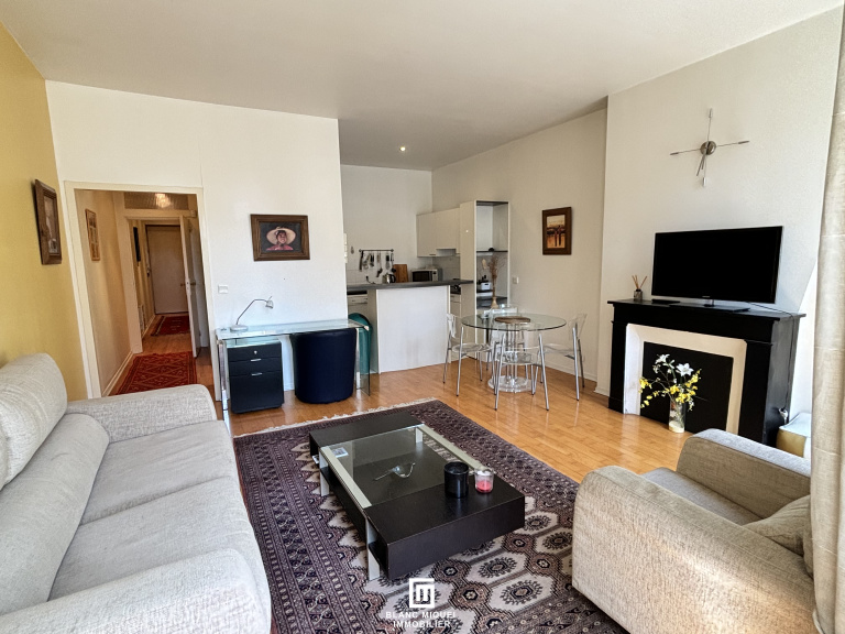 Bel appartement entièrement meublé de type T2, composé d'une entrée, une chambre donnant sur l'intérieur de l'immeuble ( au calme), une salle d'eau avec emplacement machine à laver, un wc séparé et un séjour lumineux avec une cuisine américaine entièrement aménagée et équipée ( plaques, hotte, four, lave vaiselle, frigo, congélateur, micro ondes).
