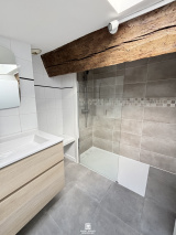 à l'étage : d'une grande chambre, un dégagement pouvant être aménagée en dressing, une salle d'eau, un wc séparé et d'un coin nuit sous pente ( idéal chambre d'appoint, chambre enfant)