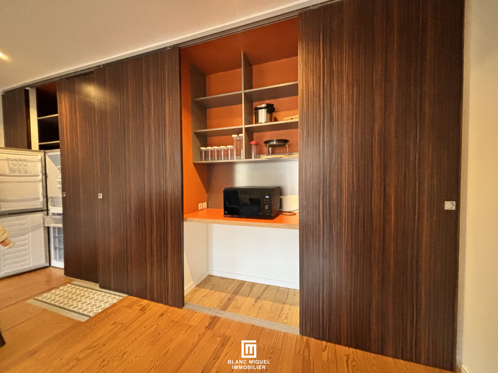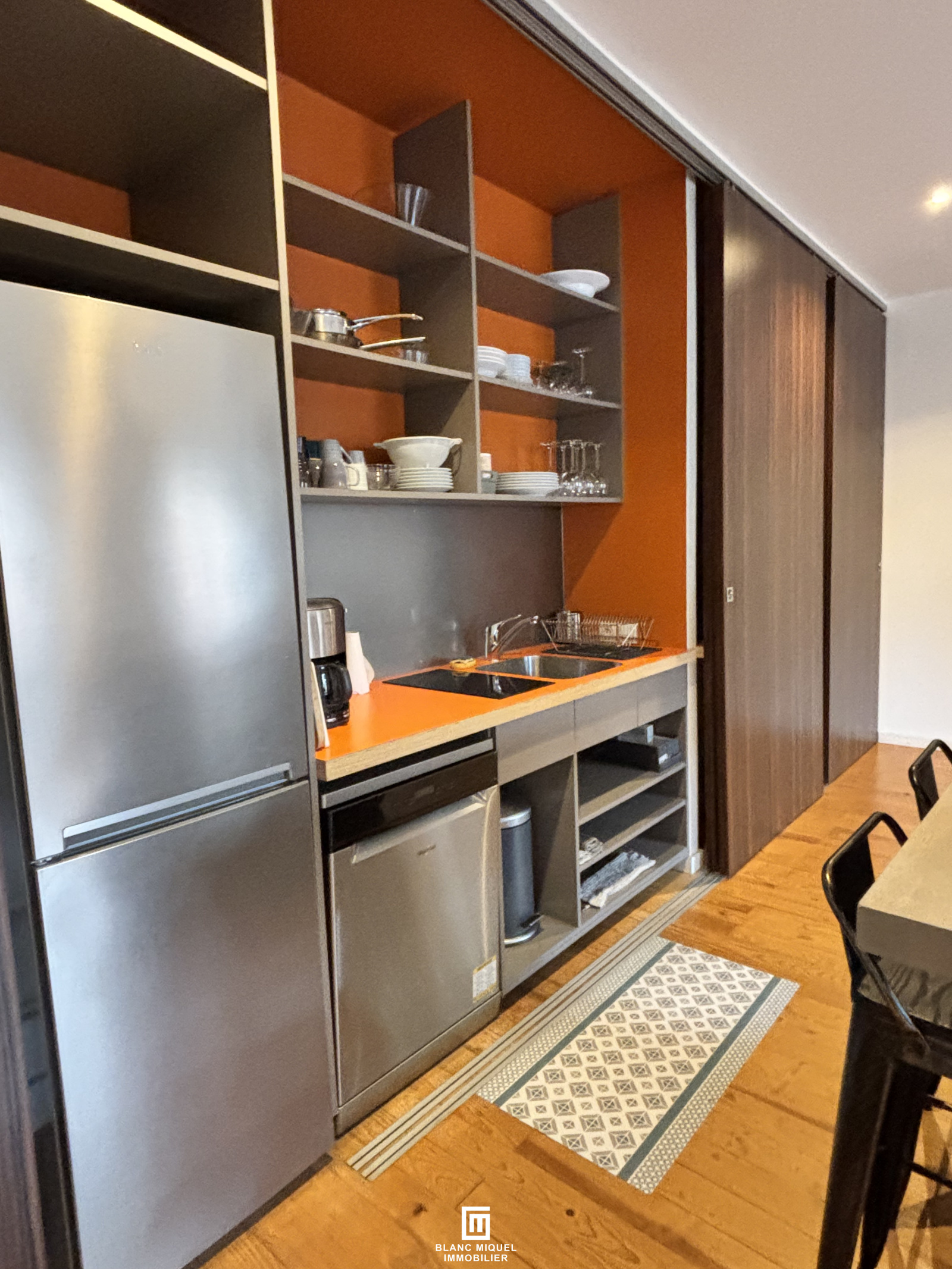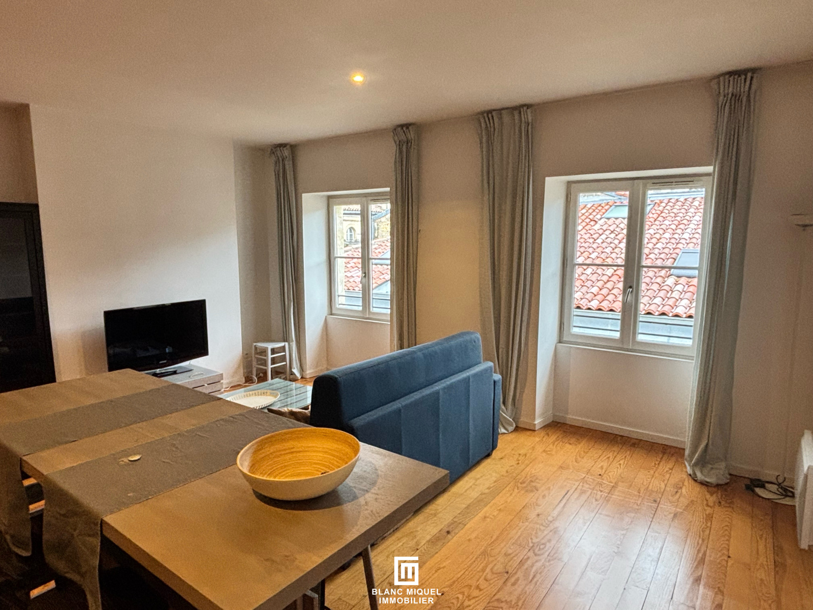 Rue Ausone, au calme, mais proche du tram D et A , et des quais, au 4ème étage d'un bel immeuble en pierre, magnifique appartement meublé de 57m2 composé d'une entrée avec rangement, une pièce de vie avec une cuisine entièrement aménagée et équipée, un wc séparé, une salle de bains et une chambre donnant sur l'intérieur de l'immeuble au calme.