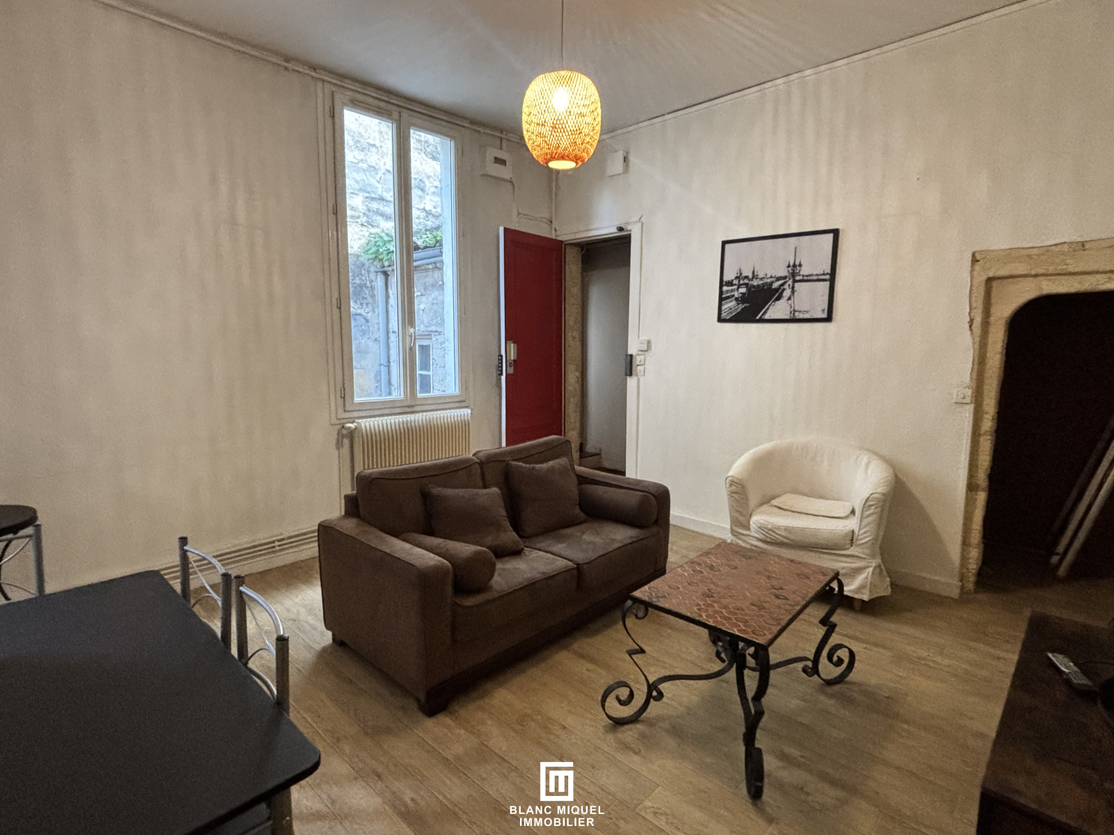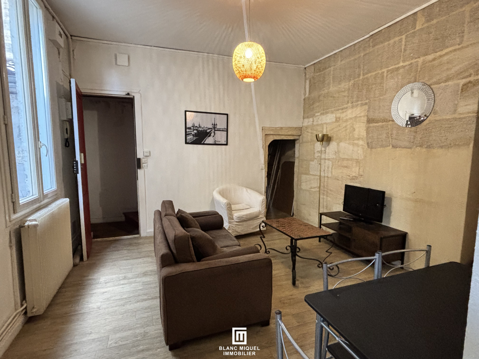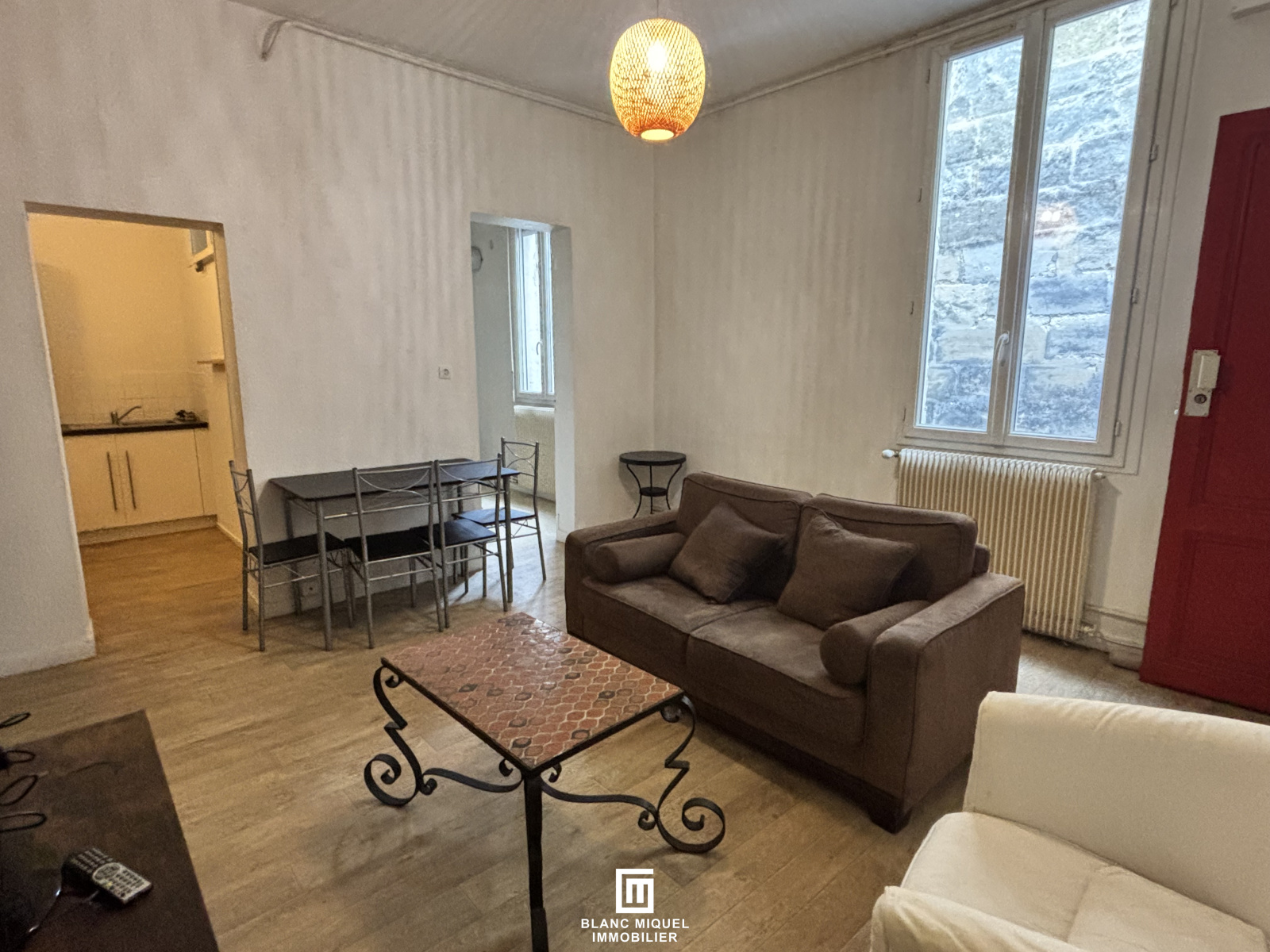 Rue du Temps Passé, au 2ème et dernier étage d'un immeuble en pierre, T2 meublé composé d'un séjour, un coin cellier, une cuisine séparée entièrement aménagée et équipée, une chambre avec espace de rangement donannt sur l'arrière de l'immeuble, au calme, et une salle de bains avec machine à laver.