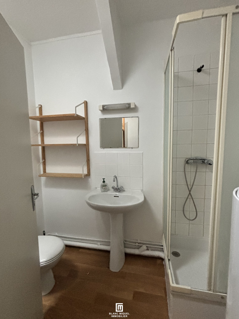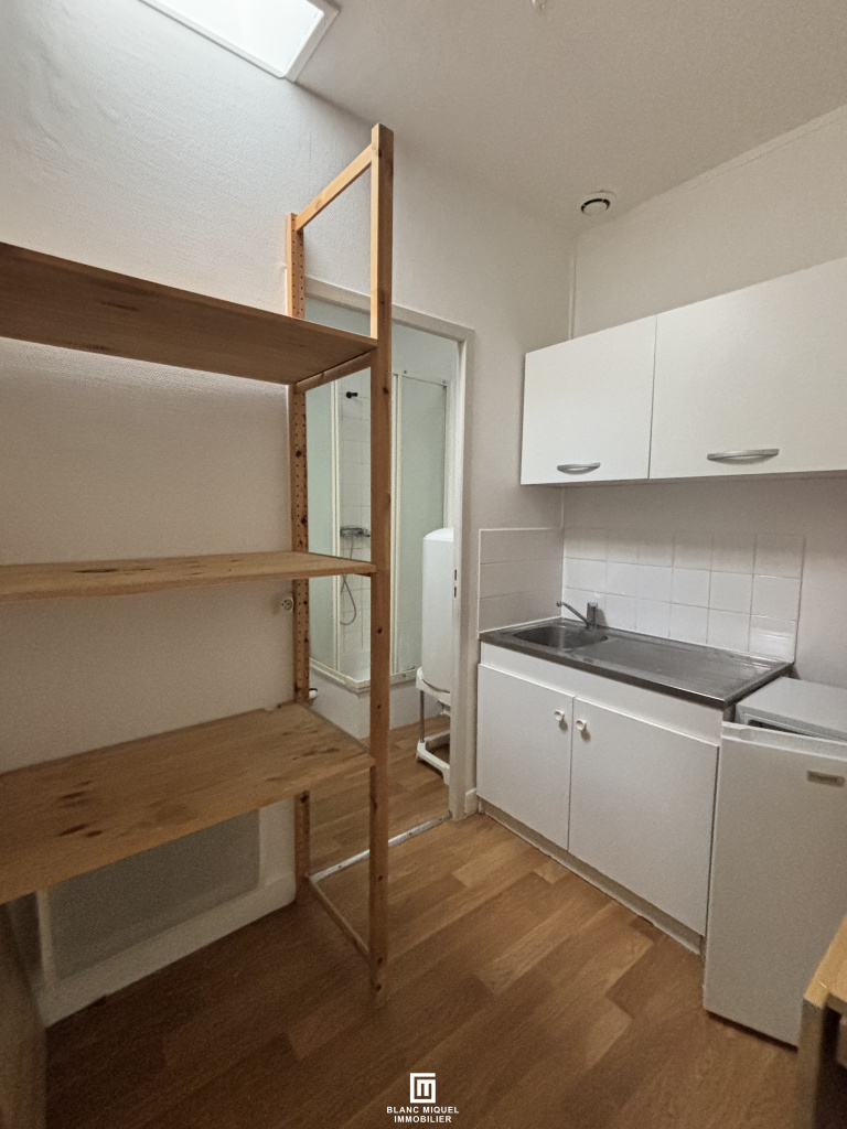 Rue des Remparts, proche de la place Peyberland, au 4ème et dernier étage d'un immeuble en pierre, sans ascenseur, T1 composé d'une cuisine séparée aménagée, une salle d'eau avec WC, et une pièce de vie.