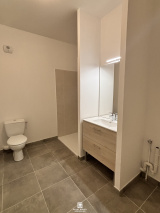 Dans la résidence neuve "L'Althéa", proche du tram et des commerces, T2 de 49,90 m2 avec loggia, situé au 5ème étage avec ascenseur, composé d'une entrée avec placards, un séjour avec une cuisine ouverte aménagée et semi équipée, une loggia, et un dégagement desservant une salle d'eau avec WC et une chambre avec placards.