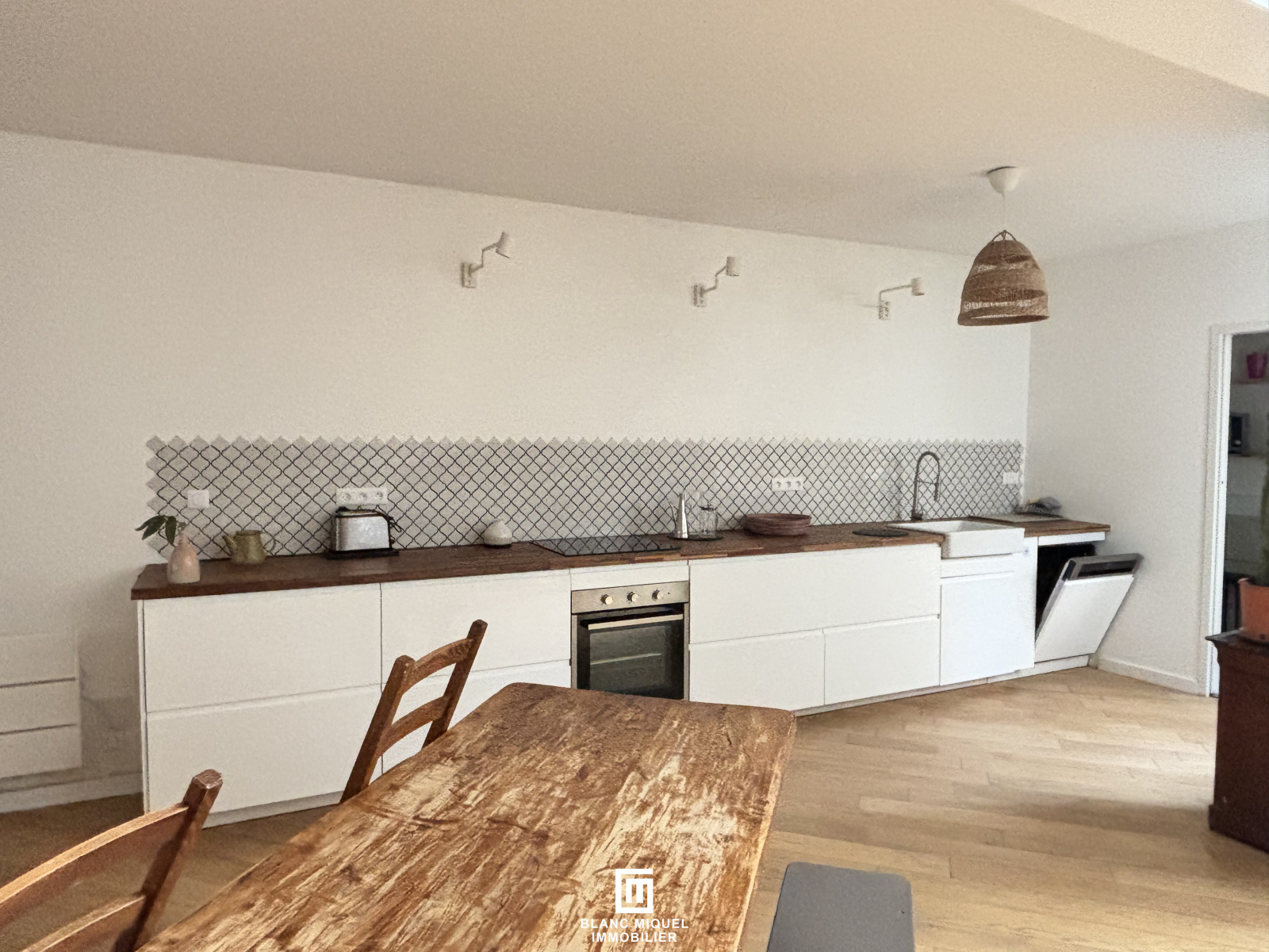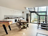 Rue de l'Arsenal, maison située à l'arrière, au calme, composé d'une belle pièce de vie lumineuse donnant sur la terrasse, avec un espace salon, baby-foot, un coin séjour, et une cuisine ouverte entièrement aménagée et équipée, et une buanderie.
