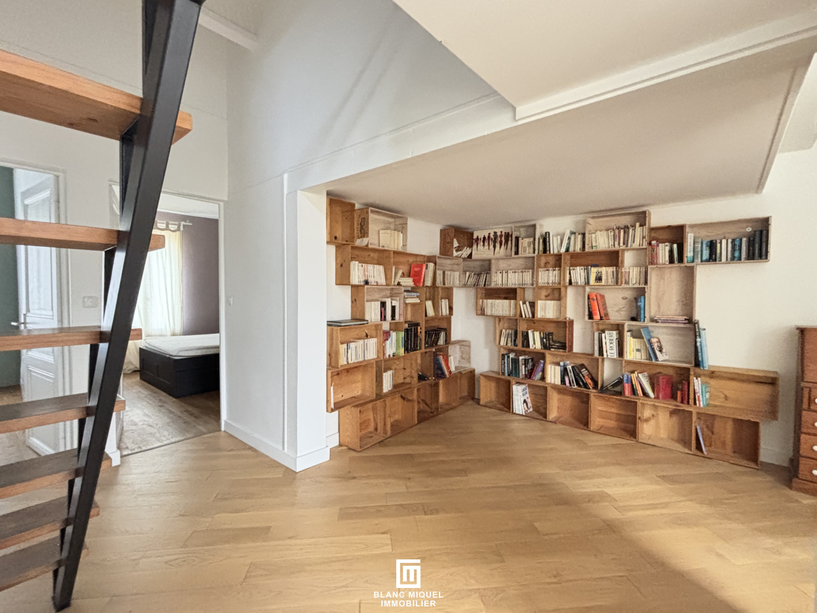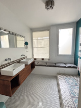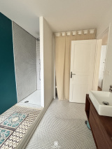 Au 1er étage, un palier avec coin bibliothèque desservant 3 chambres dont 2 avec dressing, une grande salle d'eau avec douche italienne, et au 2ème étage une mezzanine avec 2 couchages supplémentaires.