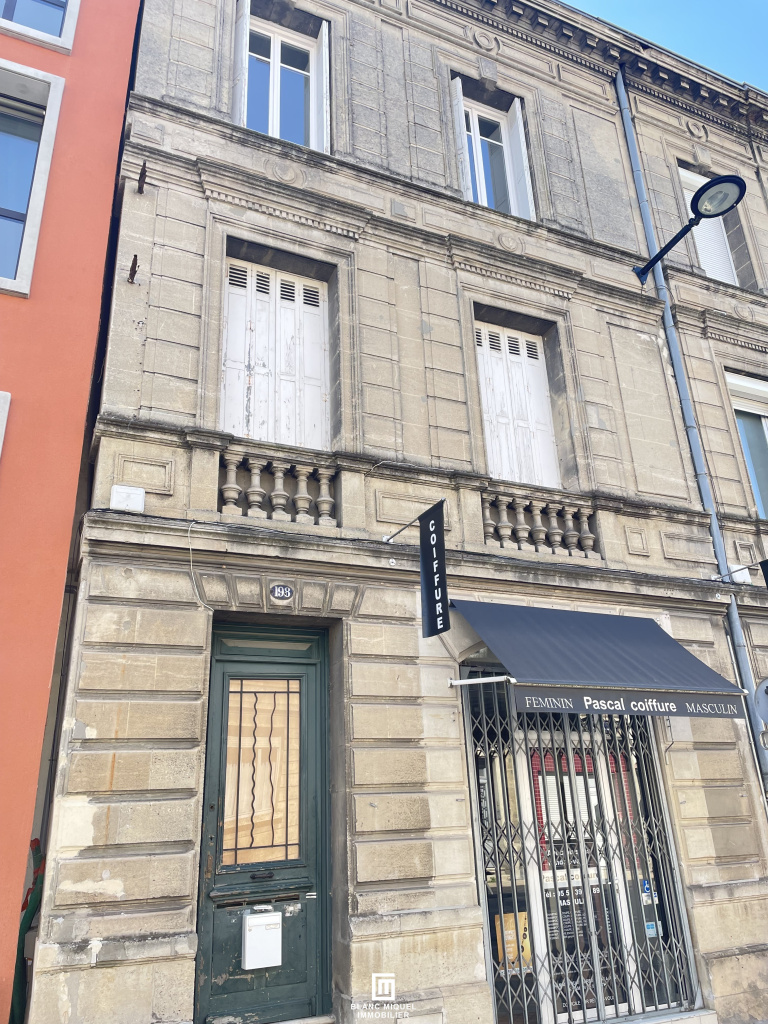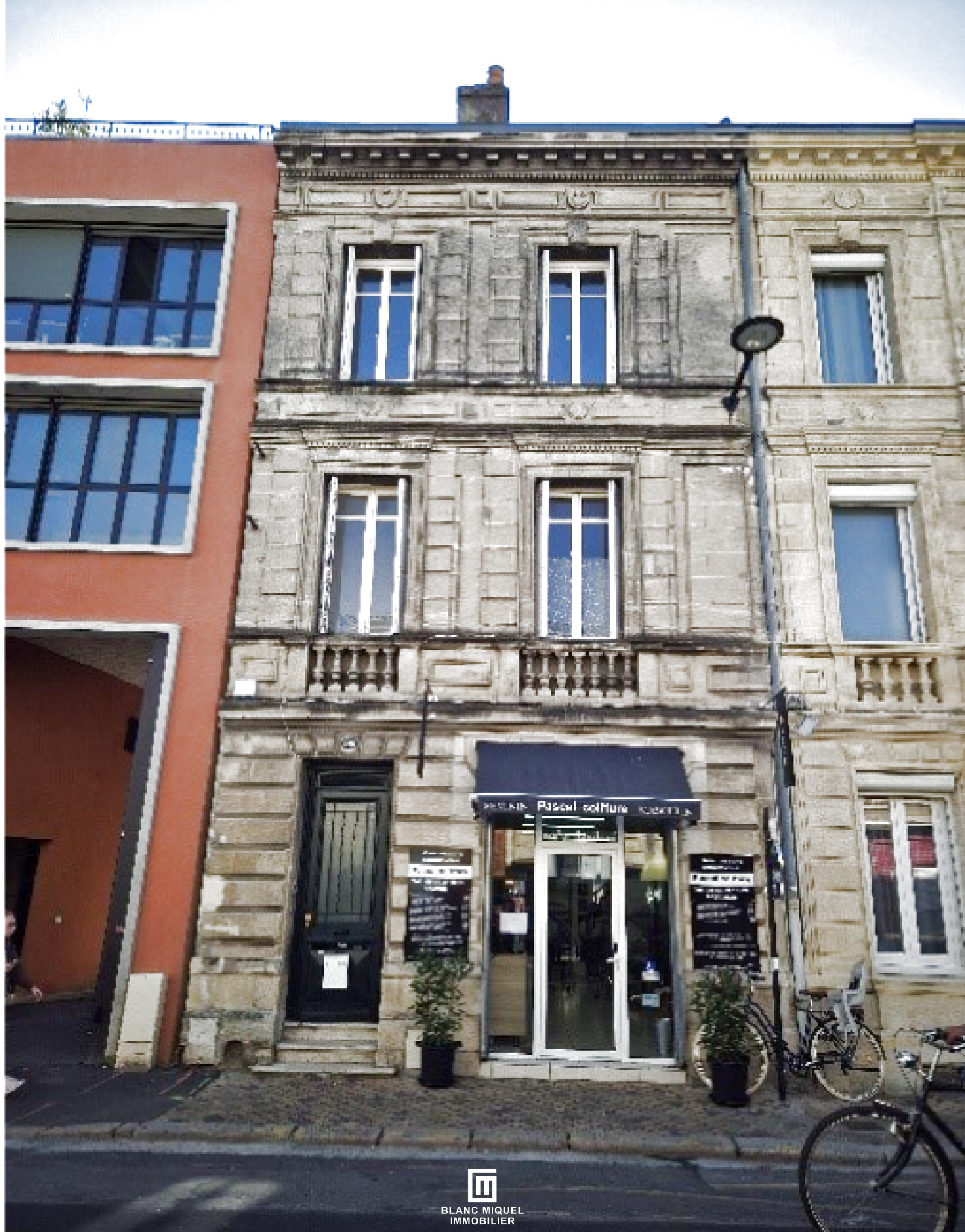 Cours BALGUERIE STUTTENBERG, immeuble de rapport en pierre en bon état traversant cadastré en 4 lots. Au rez-de-chaussée, un local commercial actuellement exploité en salon de coiffure, au 1er étage, deux appartements de type T1 dont un libre de toute occupation, au 2ème étage un T3 en duplex. Revenu locatif actuel pour les trois lots occupés 21 336 €, entièrement loué 27 384 €. Dossier sur demande. Proche écoles, commerces et TRAM.