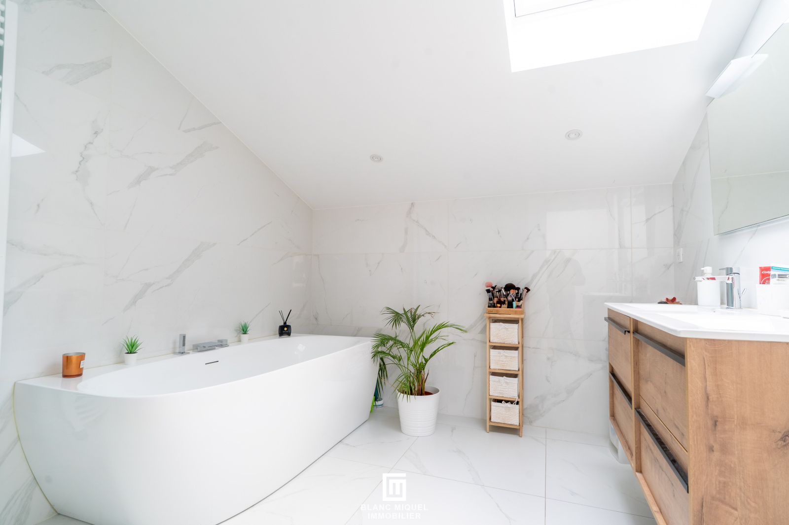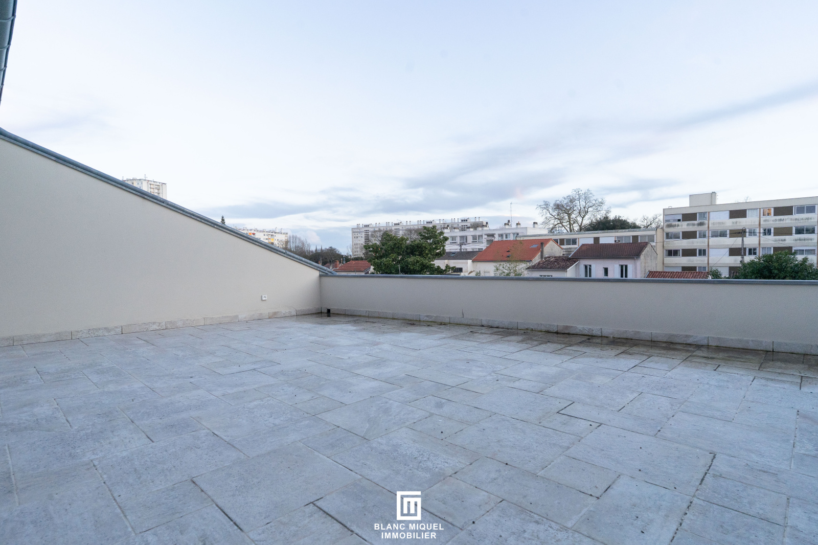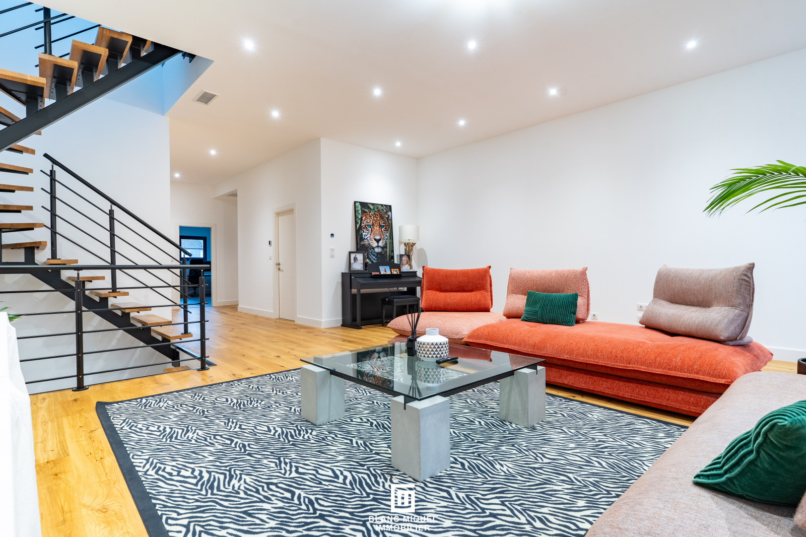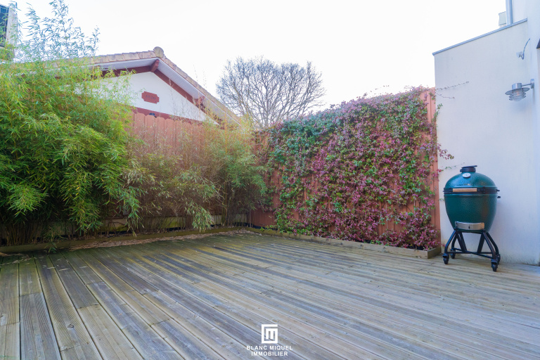 Située dans le quartier recherché Tivoli-Parc Rivière, cette maison récente construite en 2019, en parfait état, offre une surface de 202,90 m², avec jardin. Elle se compose au rez-de-chaussée, d’une entrée, d’une cuisine dînatoire ouvrant directement sur le jardin ainsi que d’un grand garage accessible depuis l’intérieur, un wc. Le premier étage accueille un vaste salon-séjour donnant sur la rue, deux grandes chambres, une salle de bains, un wc indépendant et un cellier. Au deuxième étage, un palier dessert deux chambres supplémentaires dont une bénéficiant d’une grande terrasse de 35,80 m² offrant une vue dégagée, une salle de bains et un wc. Climatisation. En fond de jardin, une maison annexe de style arcachonnaise d’une surface de 55,56 m2 de type T3 avec terrasse, entièrement indépendante, idéale pour un logement complémentaire, une location ou une activité professionnelle. L’ensemble propose de beaux volumes, des prestations de qualité et de nombreux rangements, le tout à proximité immédiate des commerces, écoles et services du quartier.
